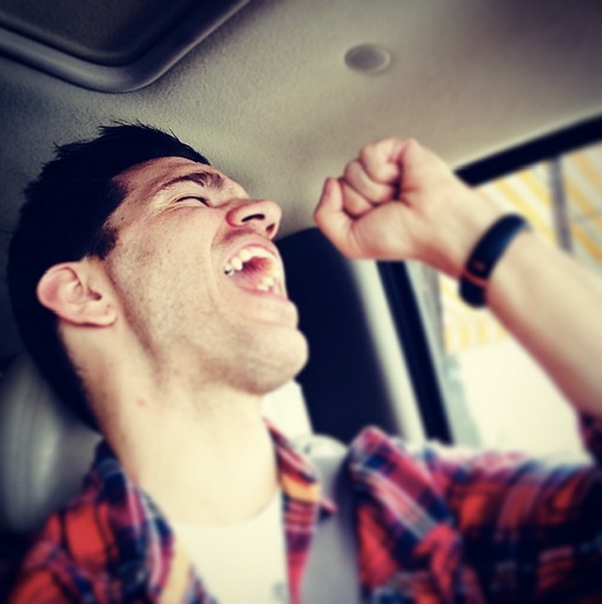 Andy goofing off and singing,”THE!SINGLE!IS!FINISHED!”